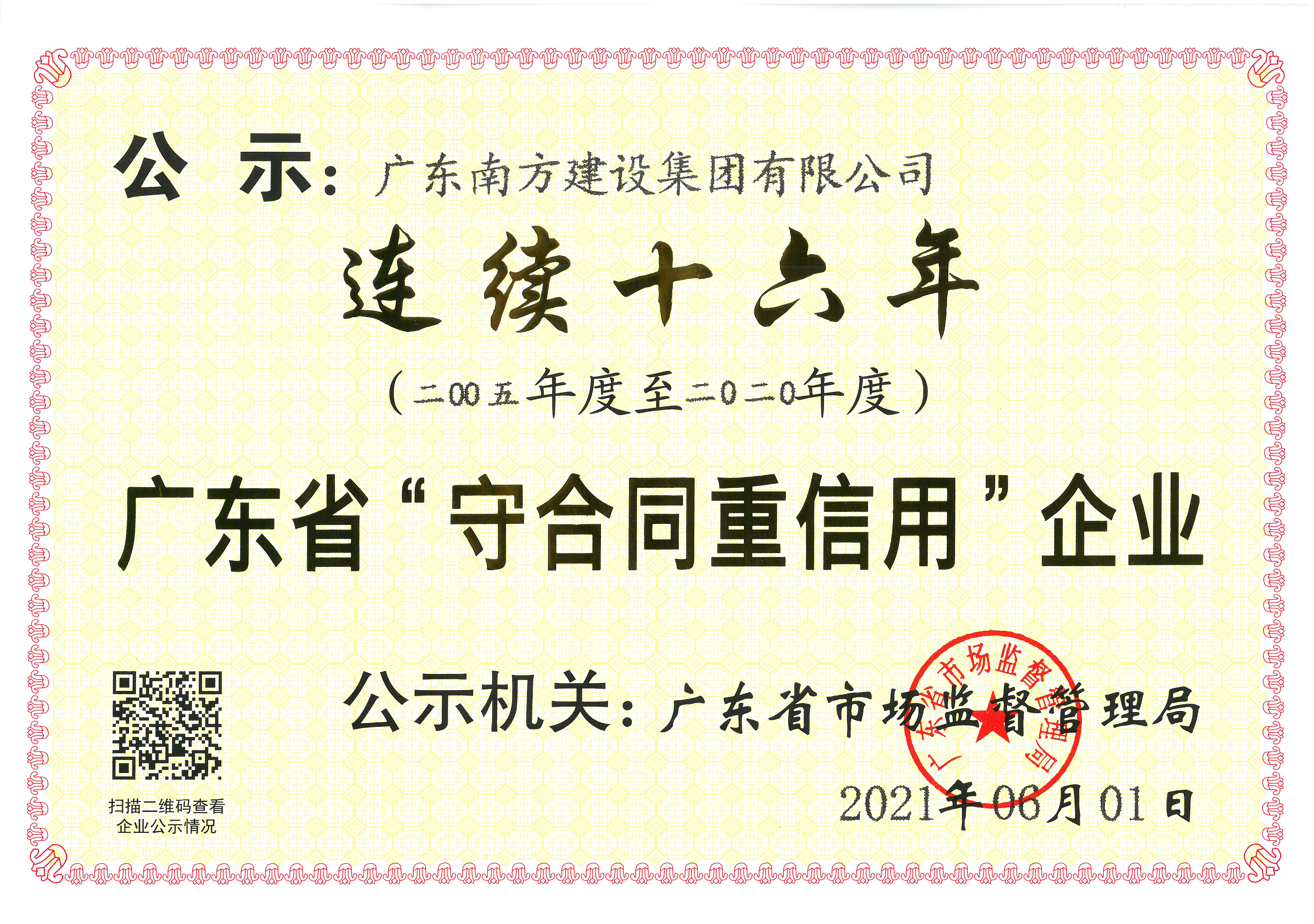 連續(xù)16年廣東省“守合同重信用企業(yè)”
