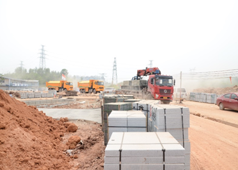 綠化種植,路面硬化,鋪設(shè)搬磚,現(xiàn)場忙碌而有序。