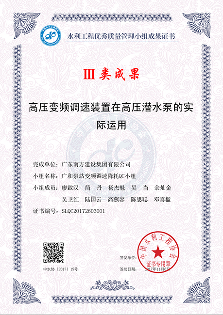 水利QC證書-III類成果-高壓變頻調(diào)速裝置在高壓潛水泵的實(shí)際運(yùn)用(電子版)