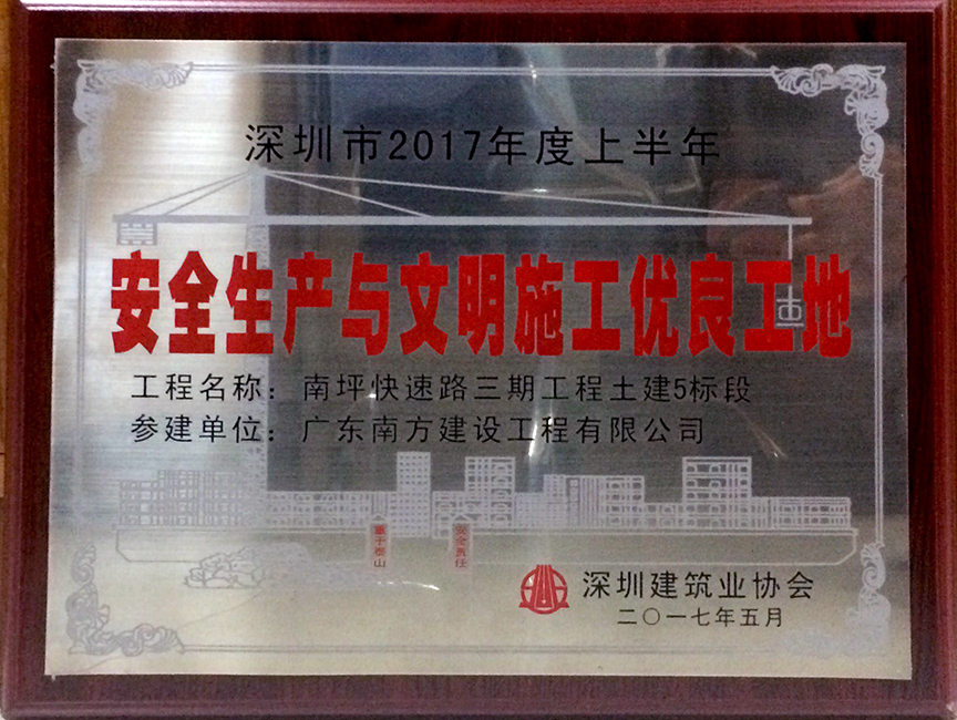 • 南坪快速路三期工程土建5標(biāo)段工程-深圳市安全生產(chǎn)文明施工優(yōu)良工地獎(jiǎng)