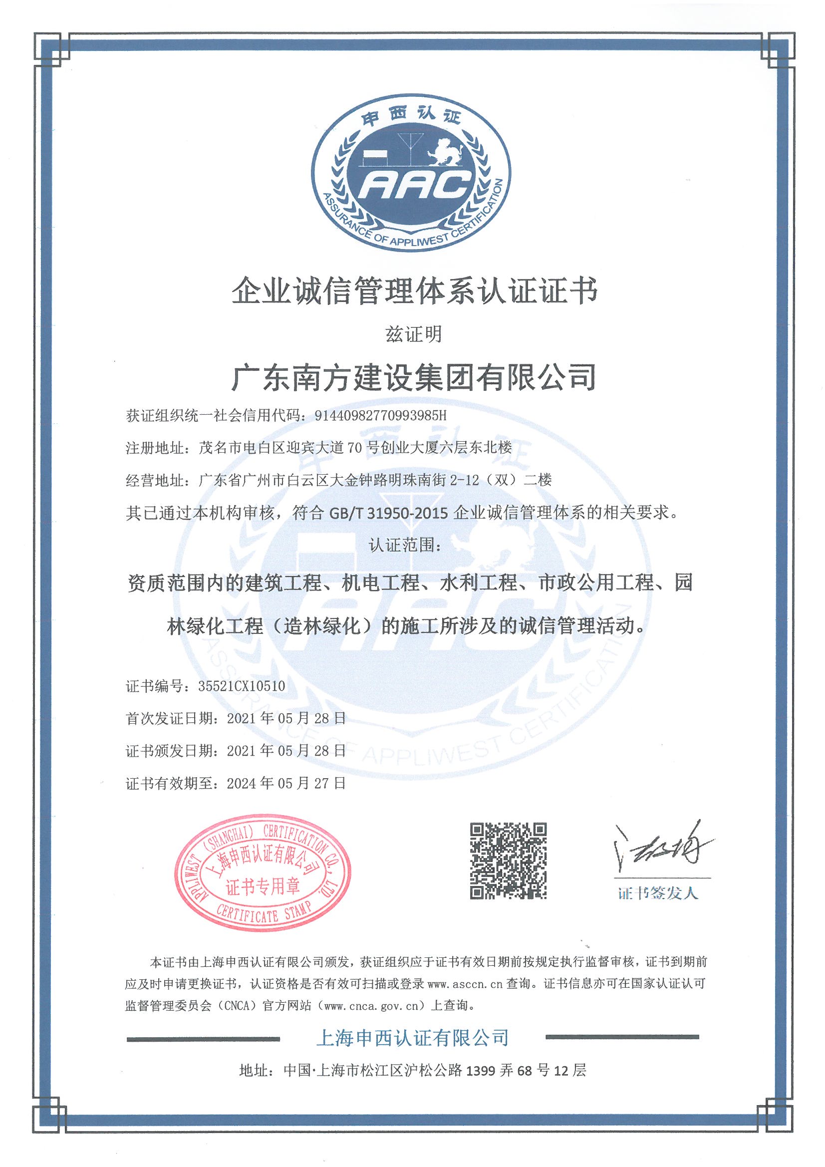 企業(yè)誠信管理體系認(rèn)證證書