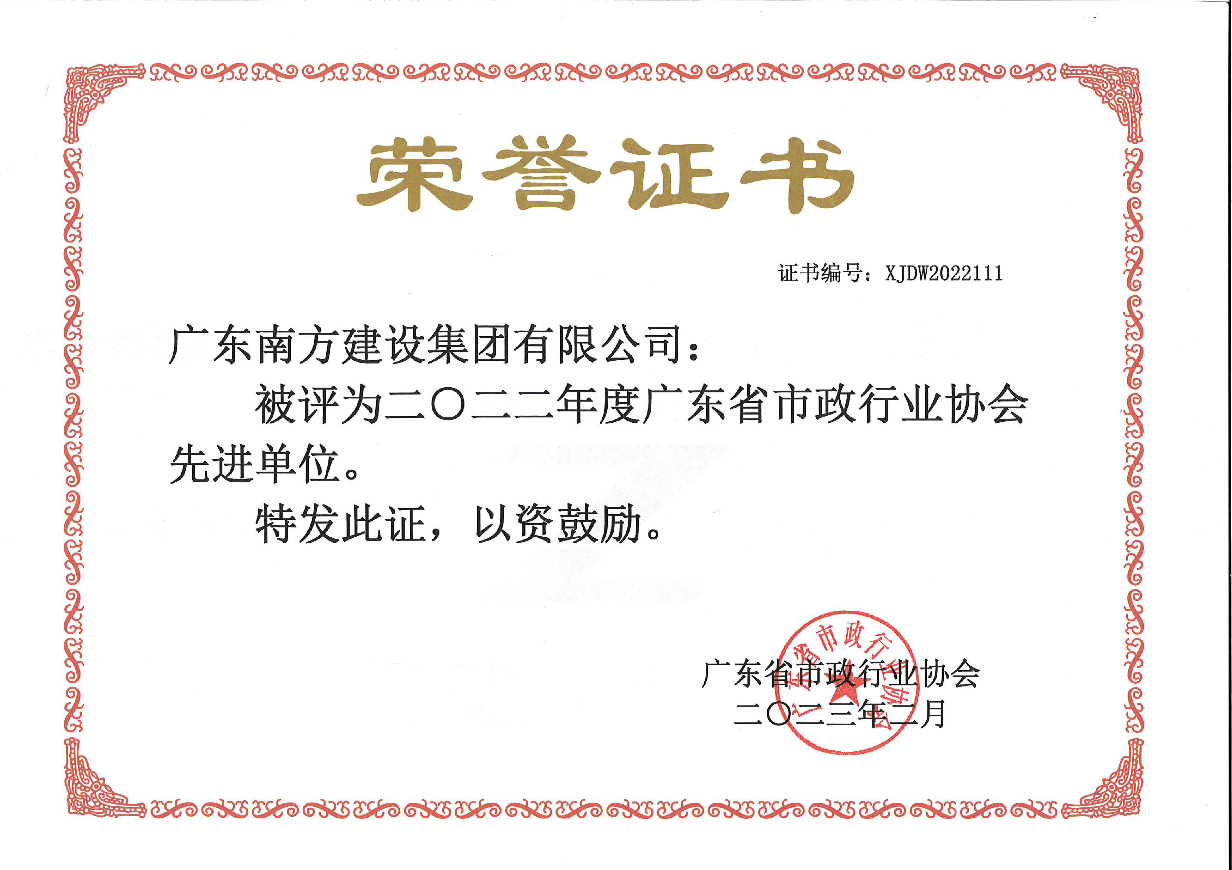 2022年度廣東省市政行業(yè)協(xié)會先進(jìn)單位
