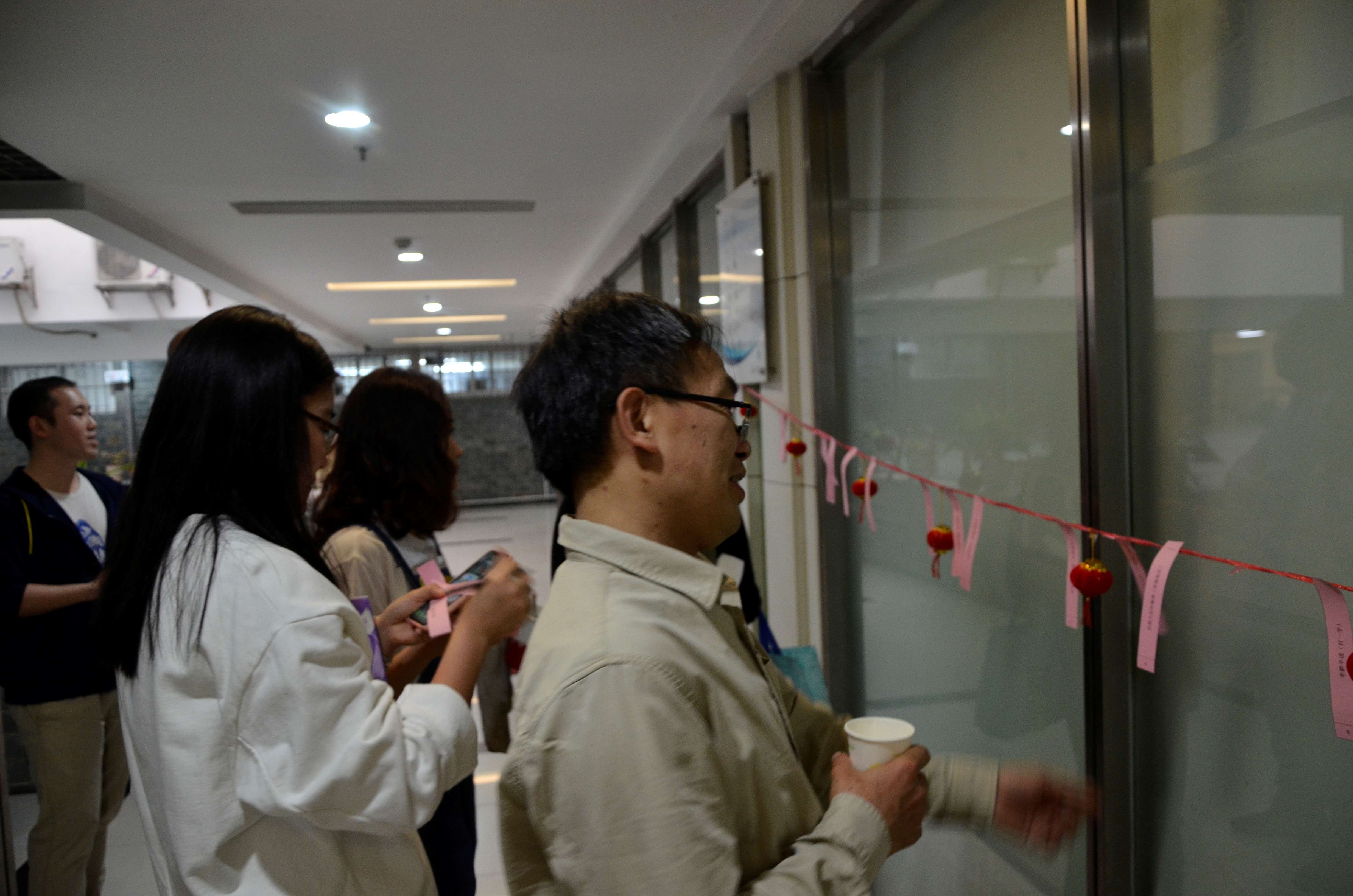 早上8:20分,在公司總部走廊,猜燈謎活動(dòng)開始,現(xiàn)場(chǎng)非常熱鬧。員工們熱情高漲、積極參與到猜謎語(yǔ)活動(dòng)中,不一會(huì)兒謎底就答了一大半。